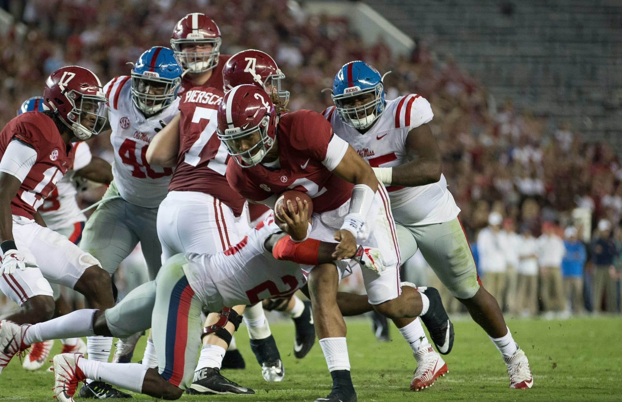 The Tide piled up 613 total yards against the defenseless Rebels, who managed only 253 yards on the night. Bama was particularly brutal on the ground, with 365 yards rushing, led by quarterback Jalen Hurts’ 101 rushing yards.